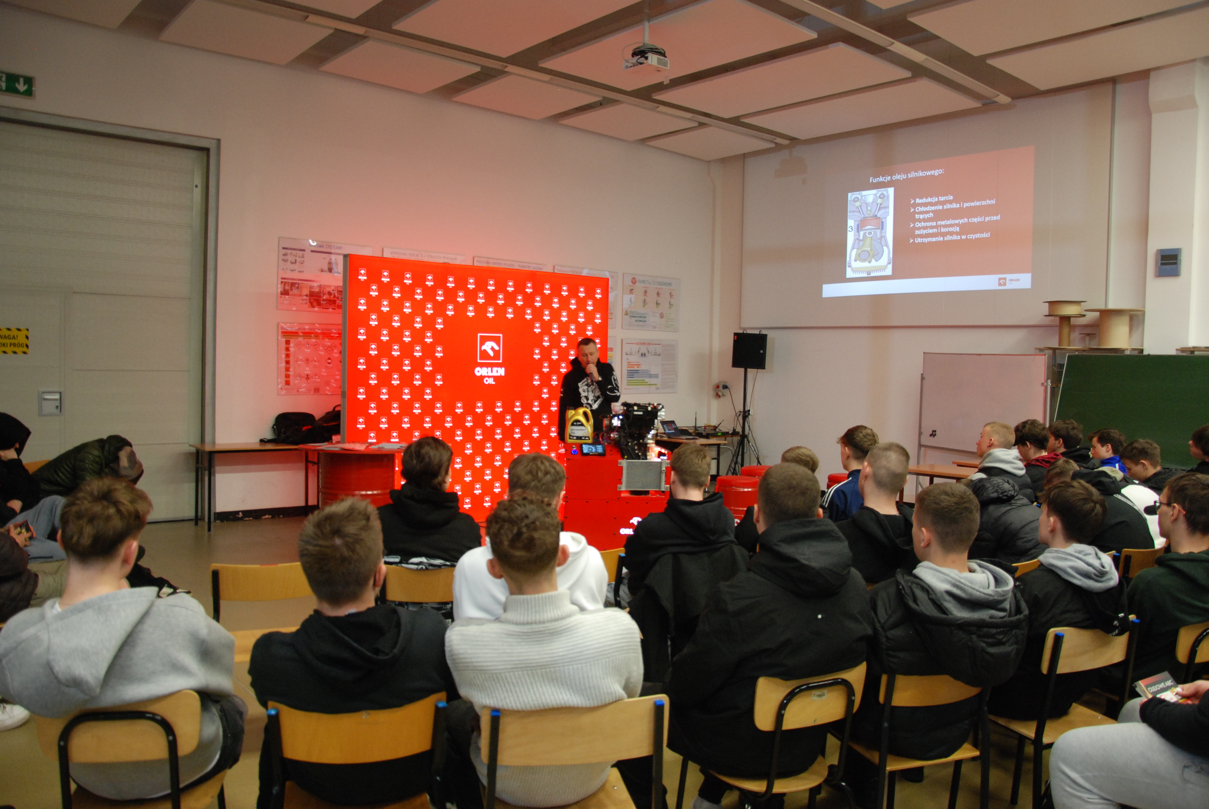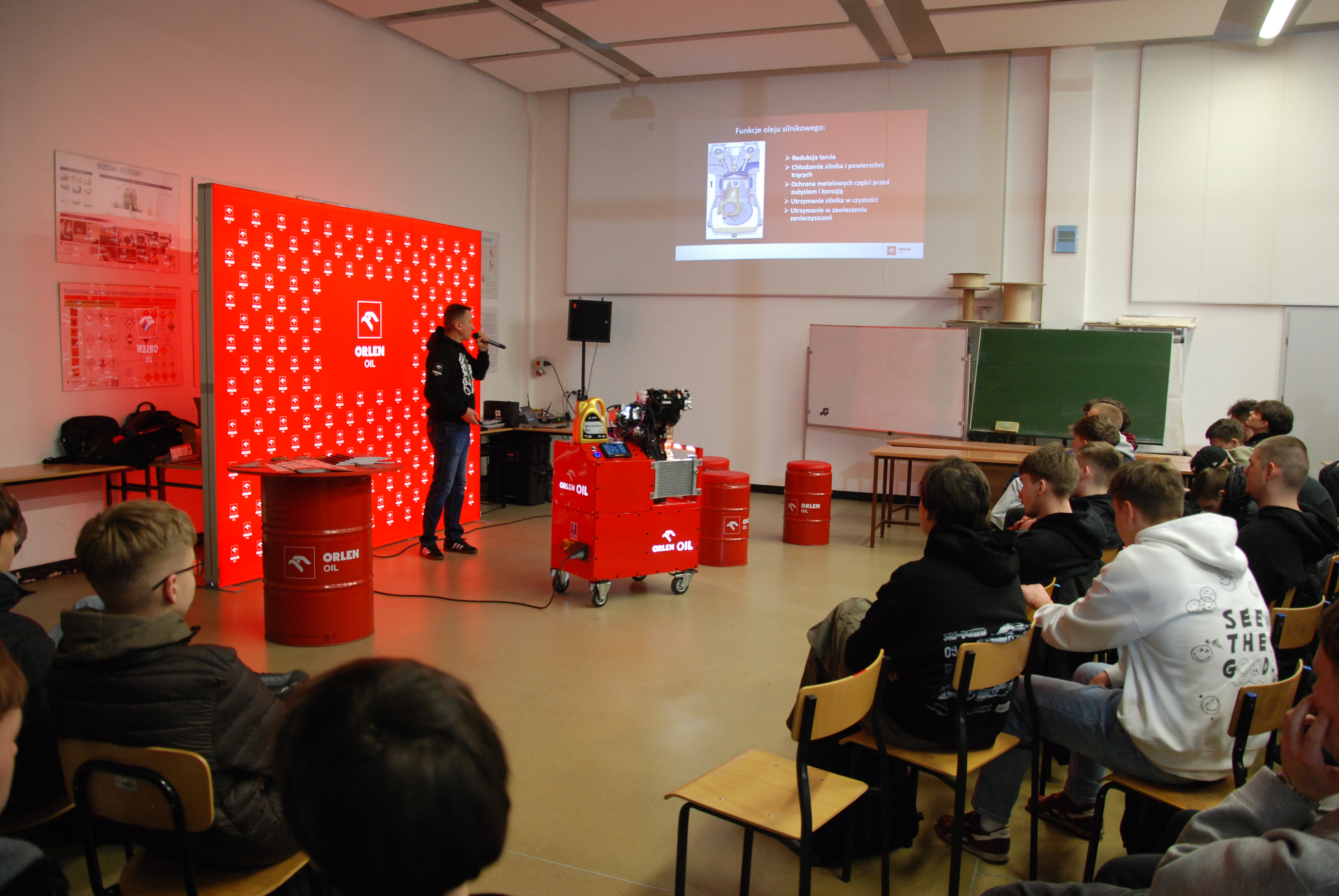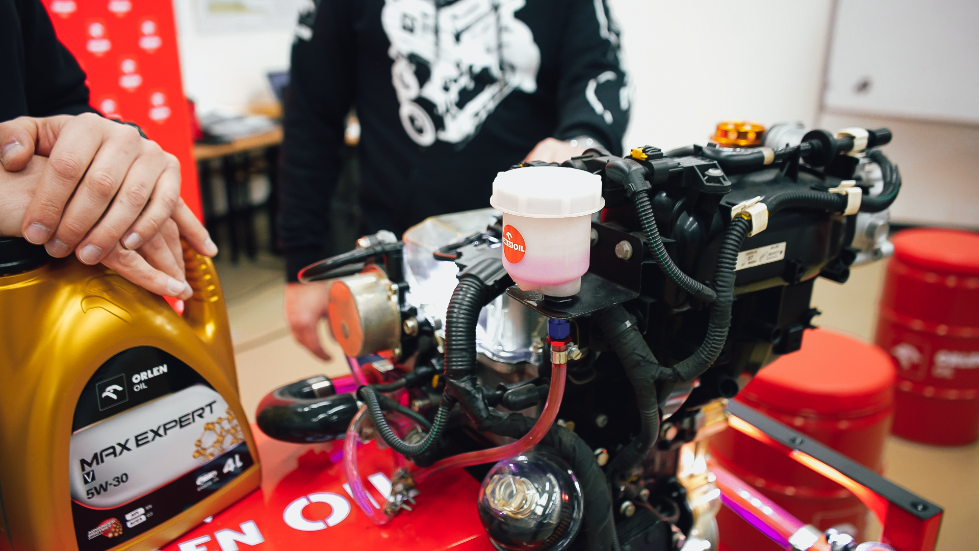 Podczas półfinałów w Krakowie uczestnicy pracowali na specjalistycznych stanowiskach edukacyjnych, m.in. z silnikiem dydaktycznym Fiata TwinAir, pozwalającym obserwować pracę jednostki napędowej oraz obieg oleju silnikowego w czasie rzeczywistym. To przykład podejścia ORLEN OIL do edukacji – maksymalnie praktycznej, bliskiej realiom codziennej pracy w warsztacie.